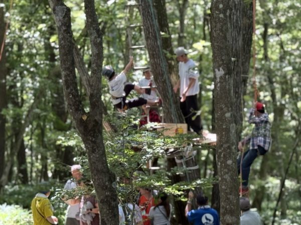 薪割り、火起こし、調理。去年やった事を思い出しながら小学生の子ども達含めて、大人に強制されて何かをするのではなく、自身で今何をしようかを考えて動く事がホントに凄かった。何よりも、子ども達が大人を選ばないで話しかける姿が多かった。ここにいる大人は、自分達を傷つけないと言うメッセージが確実に子ども達に伝わっていた。最年少の初参加の男の子は、1日目の振り返りでキャンプの達人の1人に会いたかったと自分の言葉で伝えてくれた。子ども達が会いたいと思える大人との出会い。ここなら自分らしくいられると思える場所を作れている事がほんとに嬉しかった。そして、今年は、ツリーハウス作りにも挑戦。
